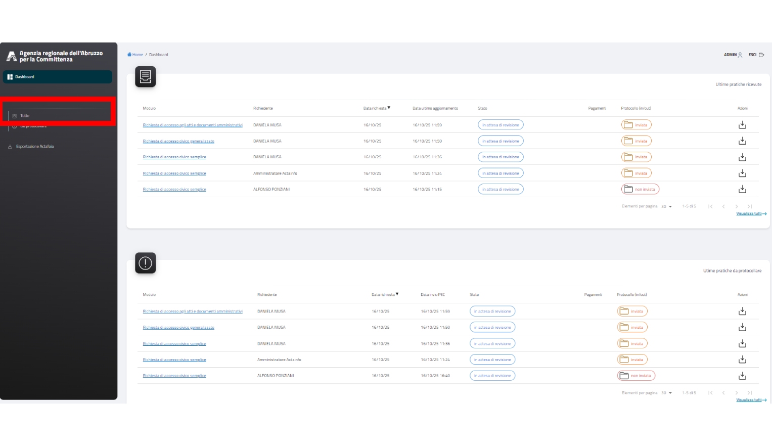 Nella pagina delle richieste ricevute troviamo:
