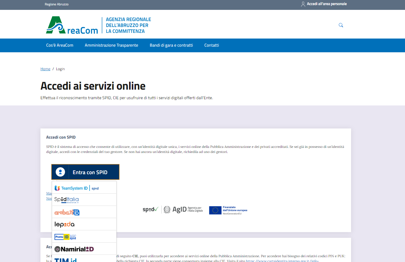 Proseguire cliccando su “Entra con SPID” e selezionando il proprio gestore di identità dal menù a tendina, ovvero quello che ha fornito le credenziali SPID.